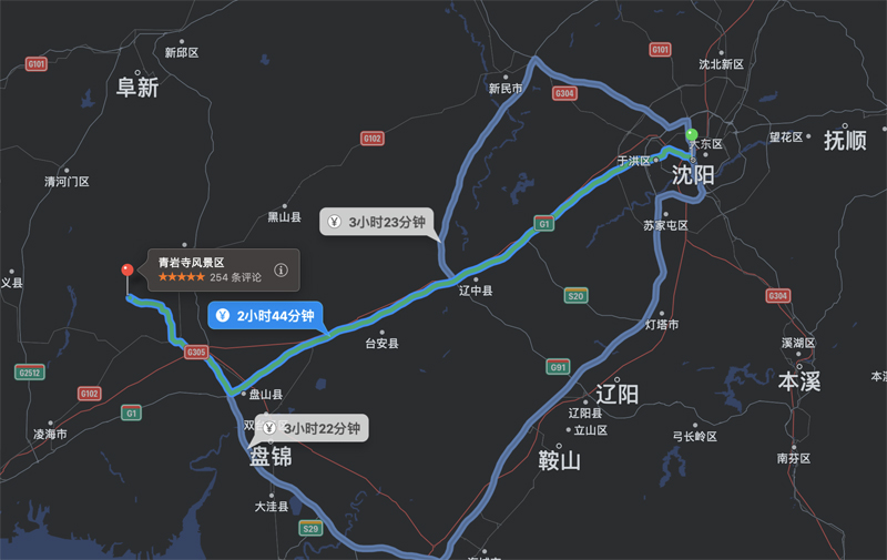 從北京方向駛來車輛沿G1京哈高速532A出口行駛至G4513奈營高速,之后經(jīng)211號(hào)(甜水收費(fèi)站)出口駛出進(jìn)入G305國道,最后沿X717縣道抵達(dá)終點(diǎn)錦州北鎮(zhèn)青巖寺風(fēng)景區(qū)。北京方向車輛也可從G1京哈高速481號(hào)(凌海站)出口駛?cè)隚102國道,最后沿X722縣道朝青巖寺風(fēng)景區(qū)方向抵達(dá)終點(diǎn)。