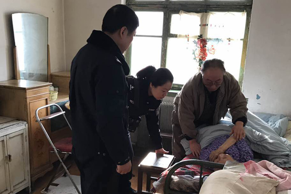 家住沈陽市大東區(qū)的夏綺云老人已經(jīng)95歲了,因癱瘓?jiān)诩遗P床多年,無法到派出所拍照片。2月18日,沈陽市公安局大東分局社區(qū)警務(wù)大隊(duì)教導(dǎo)員袁力與副大隊(duì)長韓冰冰帶著照相設(shè)備一同來到了老人夏綺云的家,采集到了老人正面睜眼的照片。