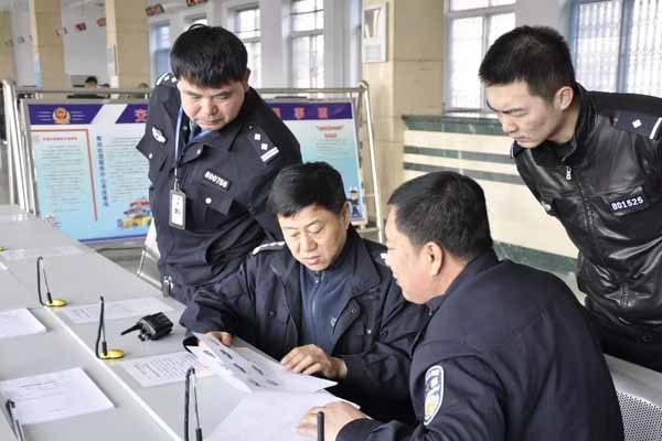 副支隊(duì)長(zhǎng)孫正德(左二)與民警們研究事故案情