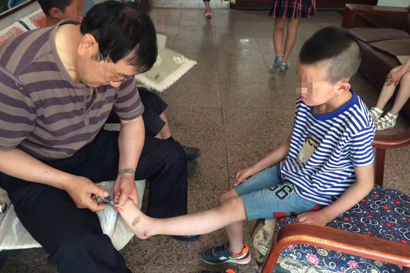小雨的智力比正常孩子略低一點點,但基本正常,可是他的雙腿不能伸直,走路非常費勁,需要借助器械。小雨的爺爺奶奶說,他們最大的愿望就是,小雨能夠通過治療自己行走。